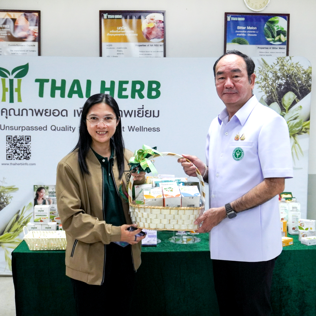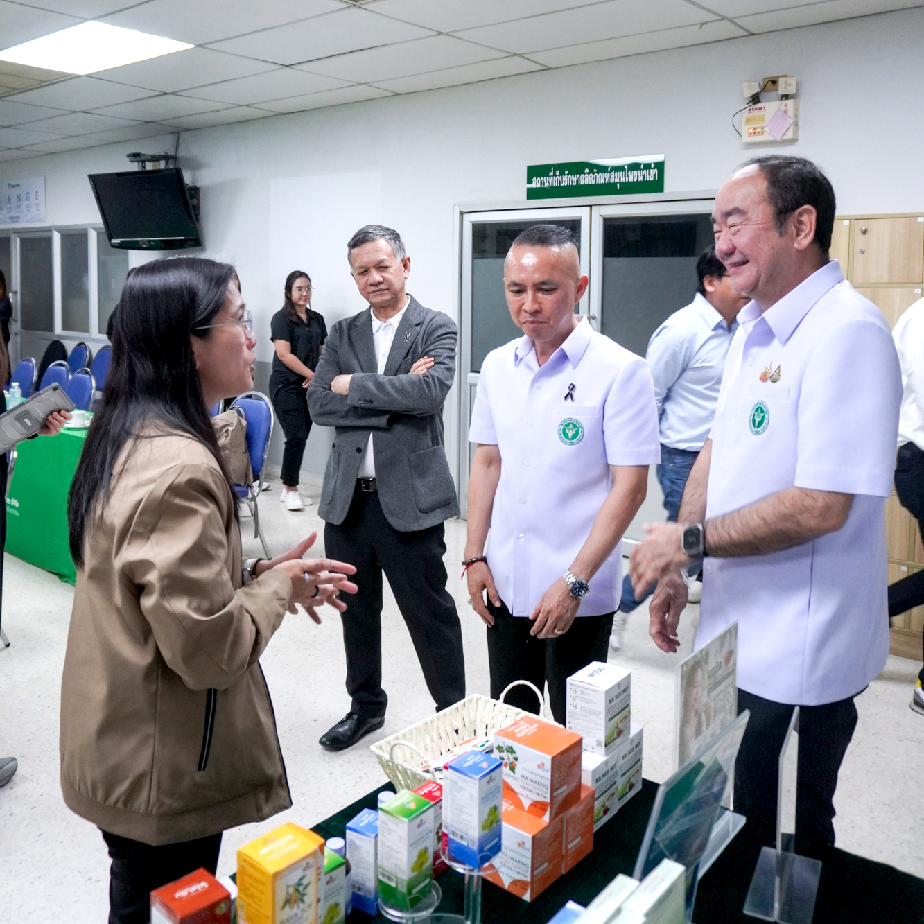 นำโดย ผศ.อัครนันท์ อริยศรีพงษ์ ที่ปรึกษารัฐมนตรีช่วยว่าการกระทรวงสาธารณสุข และ นพ. พงศธร พอกเพิ่มดี อธิบดีกรมการแพทย์แผนไทยและการแพทย์ทางเลือก พร้อมด้วยผู้แทนจากศูนย์แพทย์แผนไทย สำนักงานบริหารกองทุนภูมิปัญญาการแพทย์แผนไทย และกองพัฒนายาไทย ร่วมแลกเปลี่ยนแนวทางพัฒนาผลิตภัณฑ์สมุนไพรไทย