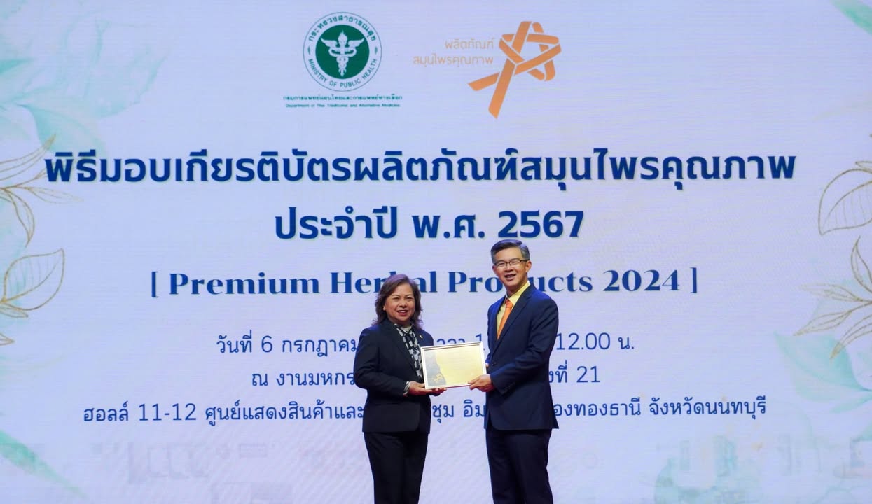 06 ก.ค. ข่าวสารประชาสัมพันธ์ ไทยเฮิร์บ เข้ารับรางวัล Premium Herbal Products 2024 Posted by admin5 15/11/2025 วันเสาร์ที่ 6 กรกฎาคม 2567 คุณศิรินุช ชีวันพิศาลนุกูล ผู้อำนวยการบริษัท ผลิตภัณฑ์สมุนไพรไทย จำกัด เข้ารับ "รางวัลผลิตภัณฑ์สมุนไพรคุณภาพ... Continue reading